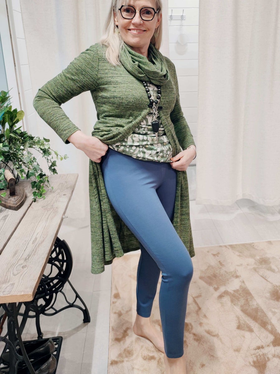 MIISA‑housujen materiaali on eläväistä, joten pituus voi vaihdella hieman. Tämä on luonnollinen ominaisuus ja takaa pehmeän, joustavan käyttötuntuman. Housut muotoillaan kosteana oman pituuden mukaan: pitkä käyttäjä venyttää housuja reilusti, lyhyt käyttäjä voi “supistella” pituutta kevyesti.